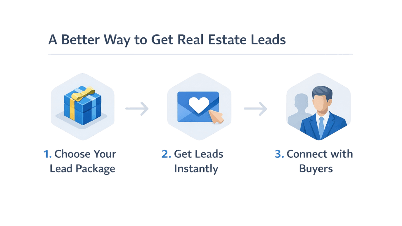 A pay-per-lead approach provides a simpler way to purchase real estate leads without long-term commitments. Instead of paying large monthly advertising budgets, agents can buy lead packs when they need additional buyer activity. Each lead represents a buyer who has submitted an inquiry through online marketing channels and is looking for information about homes.